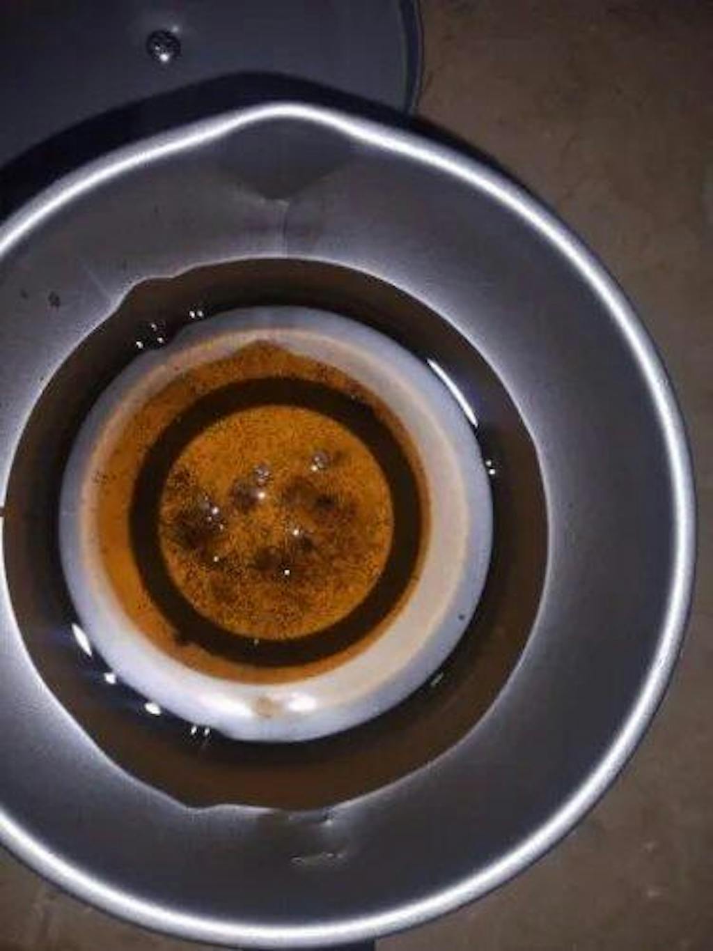 ➤ Pour used oil through the stainless steel strainer